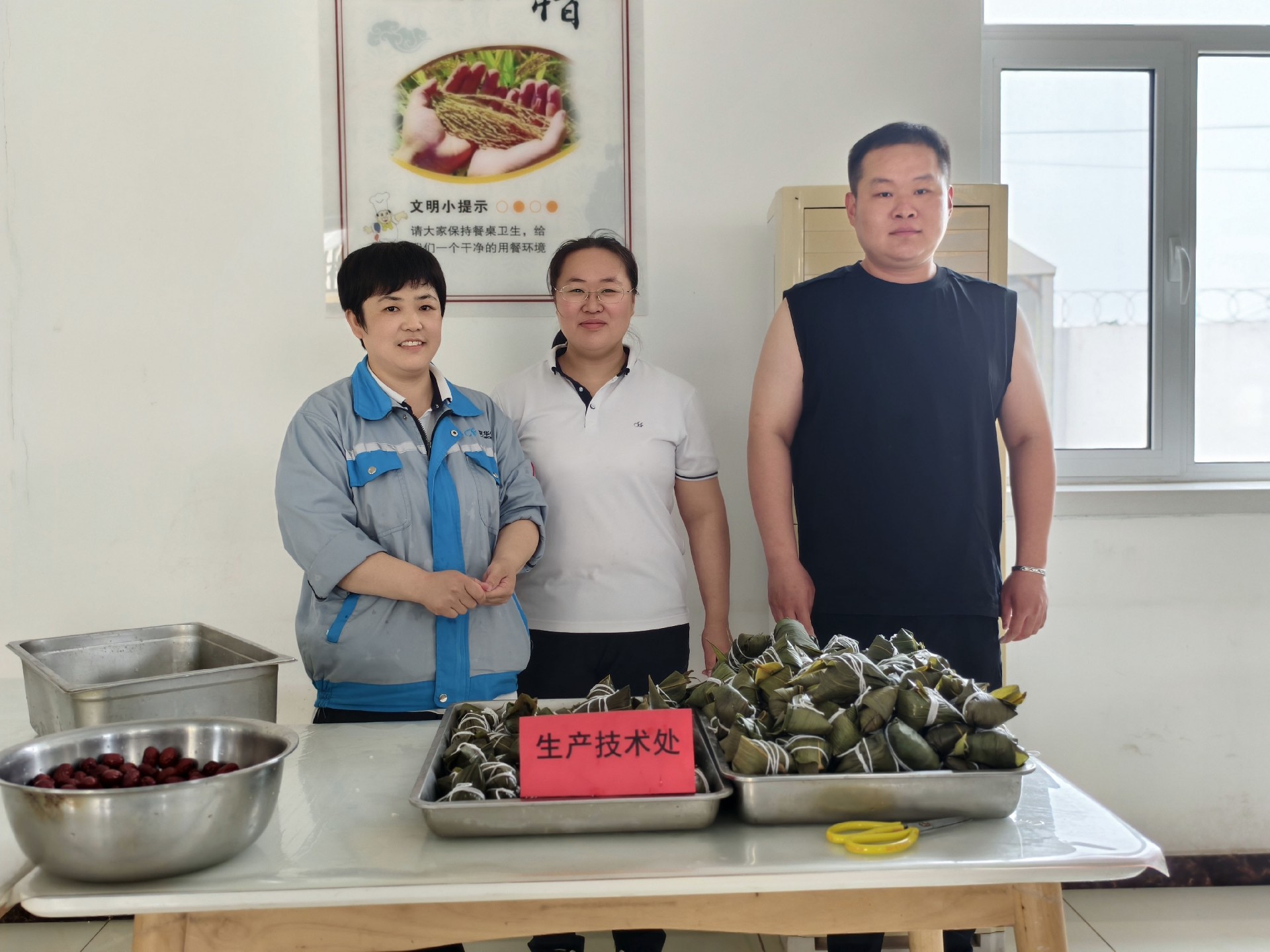 活動(dòng)當天,食堂內熱鬧非凡,糯米、粽葉、紅棗等食材整齊地擺放在桌上。員工們早早來(lái)到現場(chǎng),躍躍欲試。